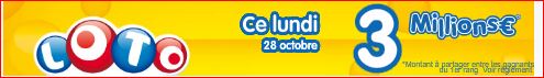 Prochain tirage du loto lundi 28 octobre 2013 cagnotte de 3 millions €