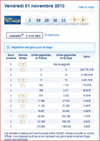 euro millions du vendredi 6 1 novembre 1/11/13- résultat du tirage-numéros gagnants-rapport.