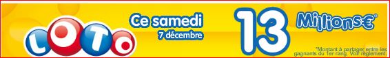 Pour le prochain tirage loto Samedi 7 décembre 2013 cagnotte de 13 millions €