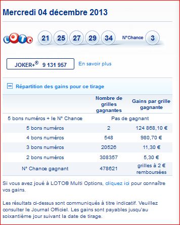 Les résultats de ce tirage du loto du 4/12 sont