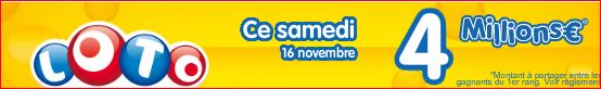 Pour le prochain tirage loto Samedi 16 novembre 2013 cagnotte de 4 millions €