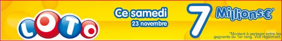 Pour le prochain tirage loto Samedi 23 novembre 2013 cagnotte de 7 millions €