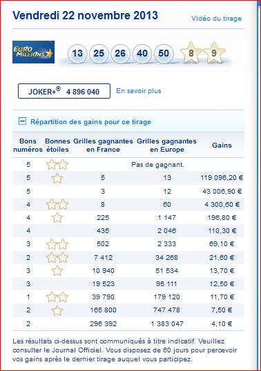 Euro Millions Tirage Résultat du Vendredi 22 novembre 22/11/2013