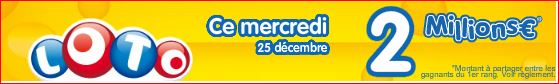 Pour le prochain tirage loto mercredi 25 décembre 2013 cagnotte de 2 millions €