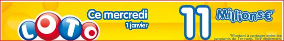 Pour le prochain tirage loto mercredi 1 janvier 2013 cagnotte de 11 millions €