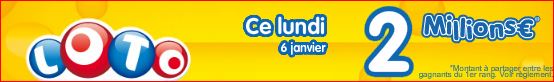 Prochain tirage du loto lundi 6 janvier Jackpot de 2 millions €