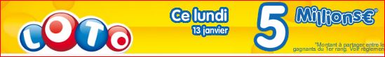 Prochain tirage du loto lundi 13 janvier Jackpot de 5 millions €