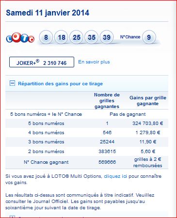 Seuls les résultats des tirages publiés au Journal Officiel font foi.