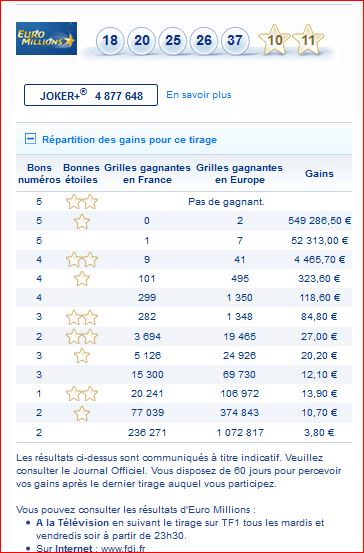 Seuls les résultats des tirages publiés au Journal Officiel font foi.