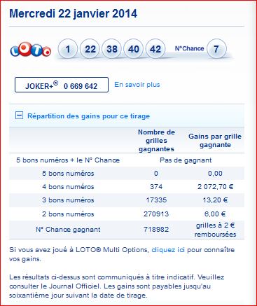 Tirage Loto du Mercredi 22 janvier 2014