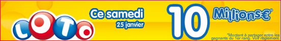 Pour le prochain tirage loto Samedi 25 janvier 2014 cagnotte de 10 millions €
