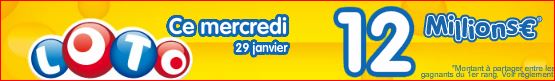 Pour le prochain tirage loto mercredi 29 janvier 2014 cagnotte de 12 millions €