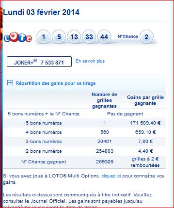 Rapport de ce loto et répartition et des gains du tirage du 3 février