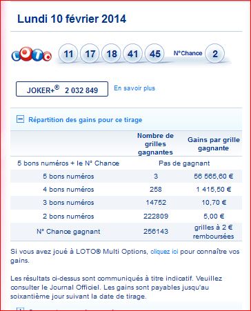 Loto tirage du Lundi 10 février 2014