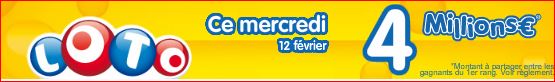 Prochain tirage du loto mercredi 12 février Jackpot de 4 millions €
