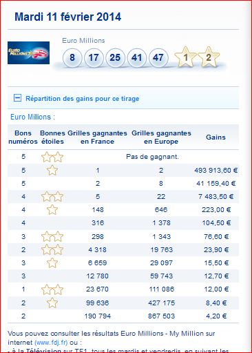 Résultat Tirage Euro Millions du mardi 11 février 11/02/2014