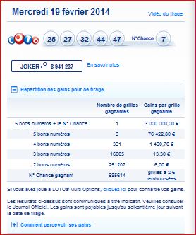 Rapport de ce loto et répartition et des gains du tirage du 19 février