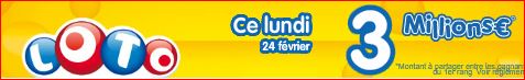 Prochain tirage du loto lundi 24 février Jackpot de millions €