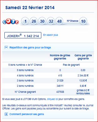 Loto tirage du samedi 22 février 2014