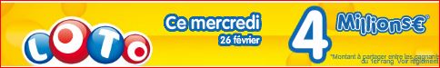 Prochain tirage du loto mercredi 26 février Jackpot de 4 millions €