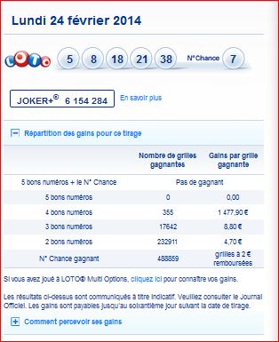 Loto tirage du Lundi 24 février 2014