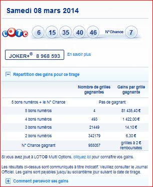 Loto tirage du samedi 8 mars 8/03/ 2014
