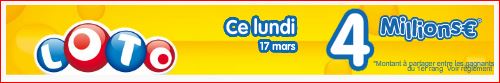 Prochain tirage du loto lundi 17 mars Jackpot de millions €