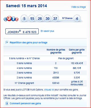 Rapport de ce loto et répartition et des gains du tirage du 15 mars 1/03