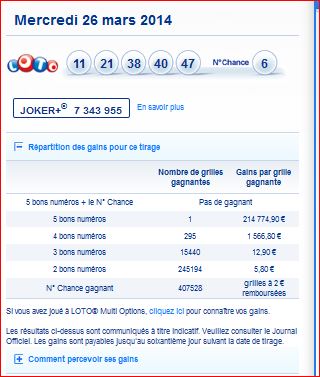 Loto tirage du Mercredi 26 mars 2014