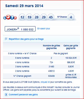 Rapport de ce loto et répartition et des gains du tirage du 29 mars 29/03