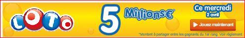 Prochain tirage du loto mercredi 2 Avril Jackpot de 5 millions €