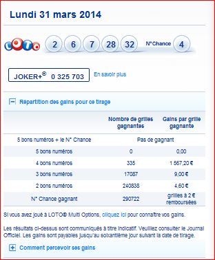 Rapport de ce loto et répartition et des gains du tirage du 31 mars