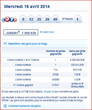 Loto tirage du Mercredi 16 Avril 2014