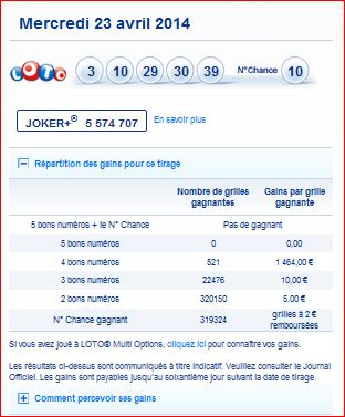Les résultats de ce tirage du loto du 23/04 sont les numéros gagnants