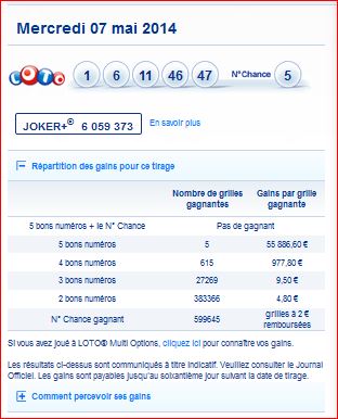 Rapport de ce loto et répartition et des gains du tirage du 7 mai