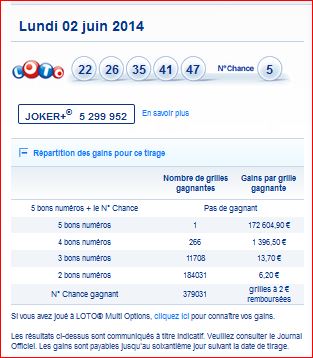 Loto tirage du Lundi 2 Juin 2014