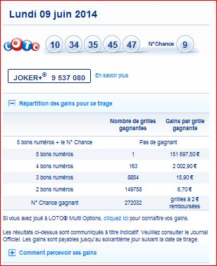 Loto tirage du Lundi 9 Juin 2014