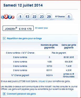 Rapport de ce loto et répartition et des gains du tirage du 12 juillet