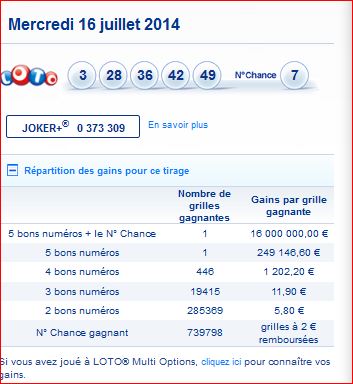 Loto tirage du mercredi 16 juillet 2014