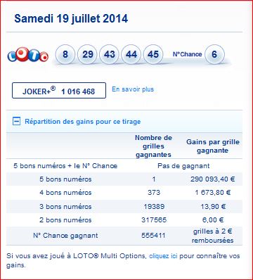 Loto tirage du samedi 19 juillet 2014