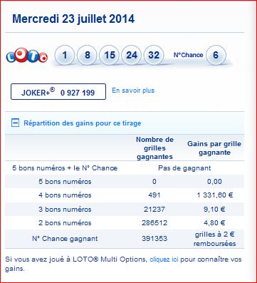 Rapport de ce loto et répartition et des gains du tirage du 23 juillet