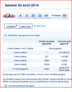 Rapport de ce loto et répartition et des gains du tirage du 2 août