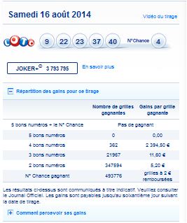Seuls les résultats des tirages publiés au Journal Officiel font foi.