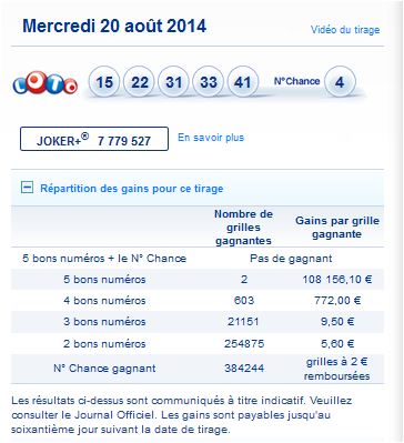 Loto tirage du mercredi 20 août 2014