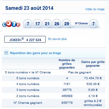 resultat-tirage- lotoLoto tirage du samedi 23 août 2014