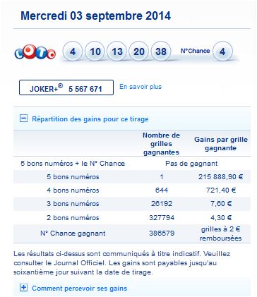 Loto tirage du mercredi 3 septembre 2014