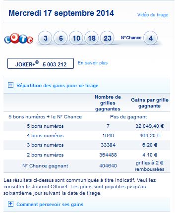 Loto tirage du mercredi 17 septembre 2014