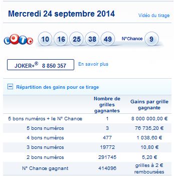 Rapport de ce loto et répartition et des gains du tirage du 24 Septembre