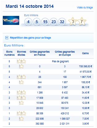 Résultat Tirage Euro Millions du mardi 14 octobre 14/10