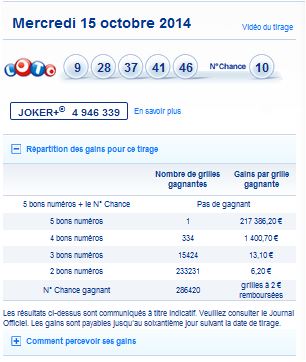 Seuls les résultats des tirages publiés au Journal Officiel font foi.